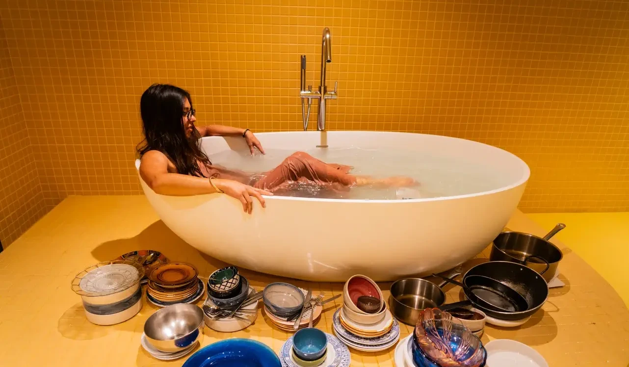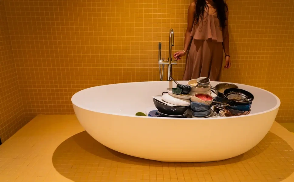 This performance was made during one of the most severe droughts in Cataluña on March 2024. During an art residency with female artists form La Clandestina at TSH Barcelona the artist washed the dirty dishes from the last shift of a restaurant and brought it to the hotel's bath tube.