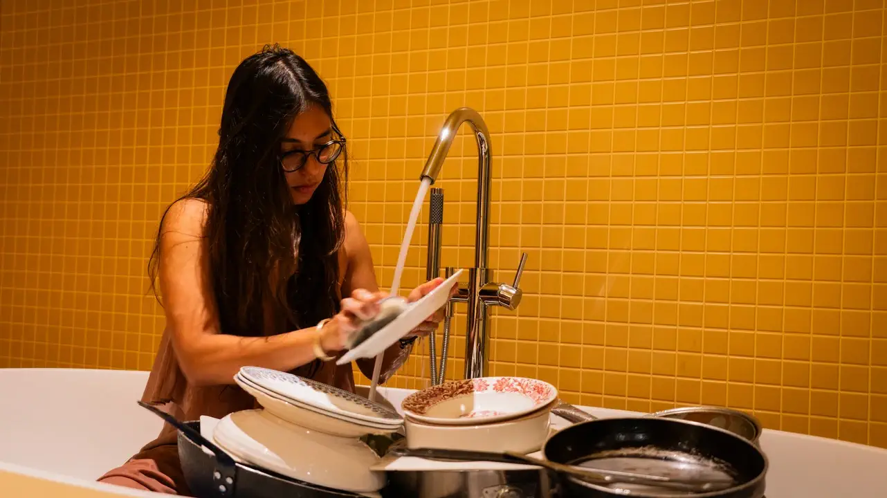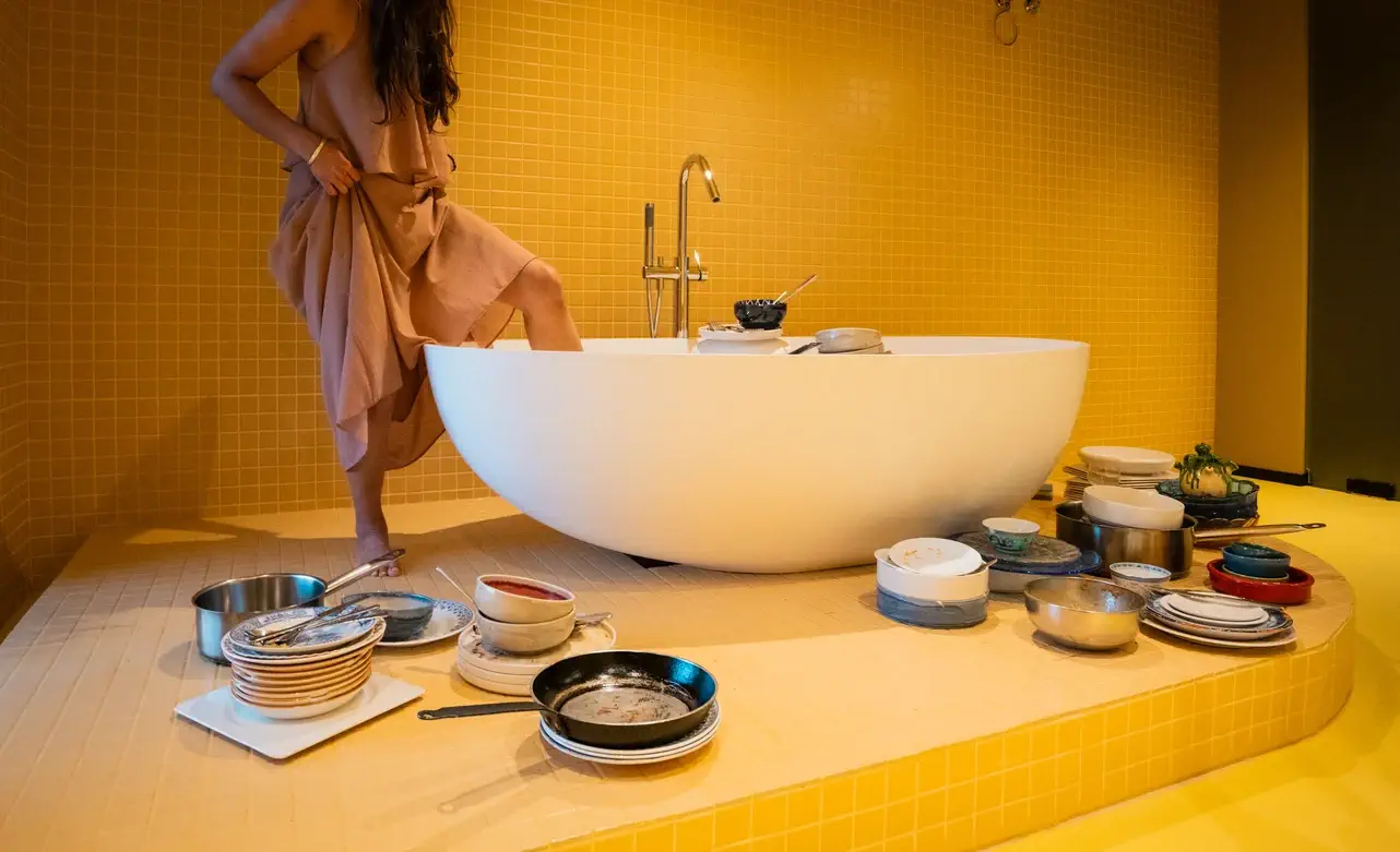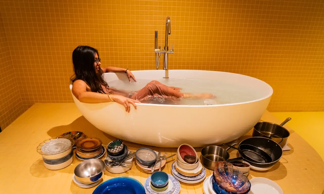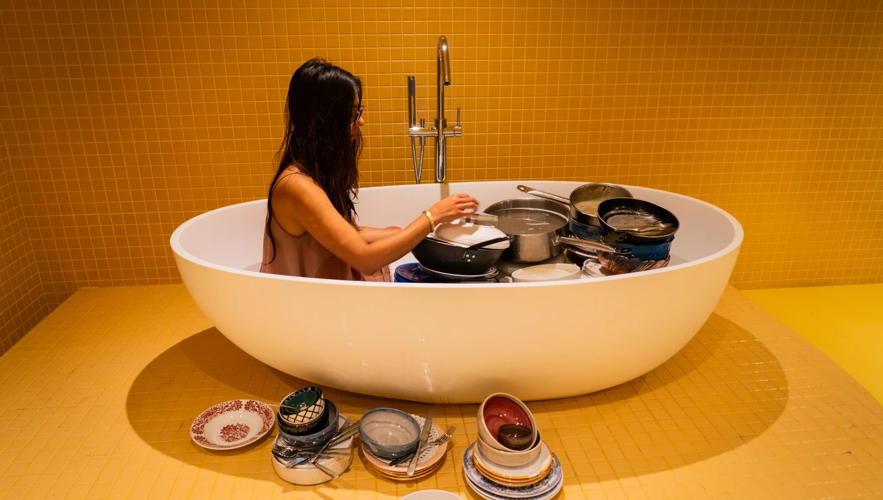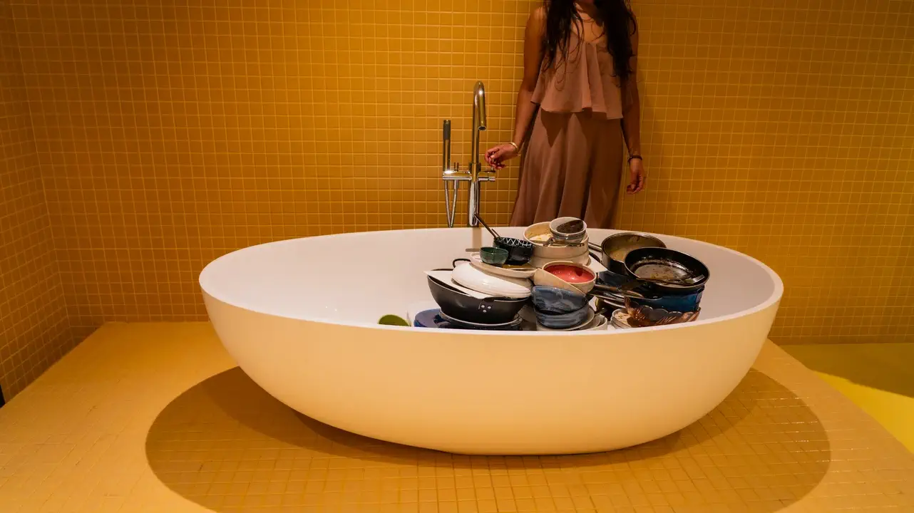 This performance was made during one of the most severe droughts in Cataluña on March 2024. During an art residency with female artists form La Clandestina at TSH Barcelona the artist washed the dirty dishes from the last shift of a restaurant and brought it to the hotel's bath tube.